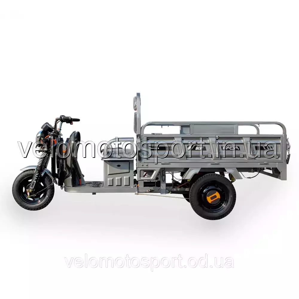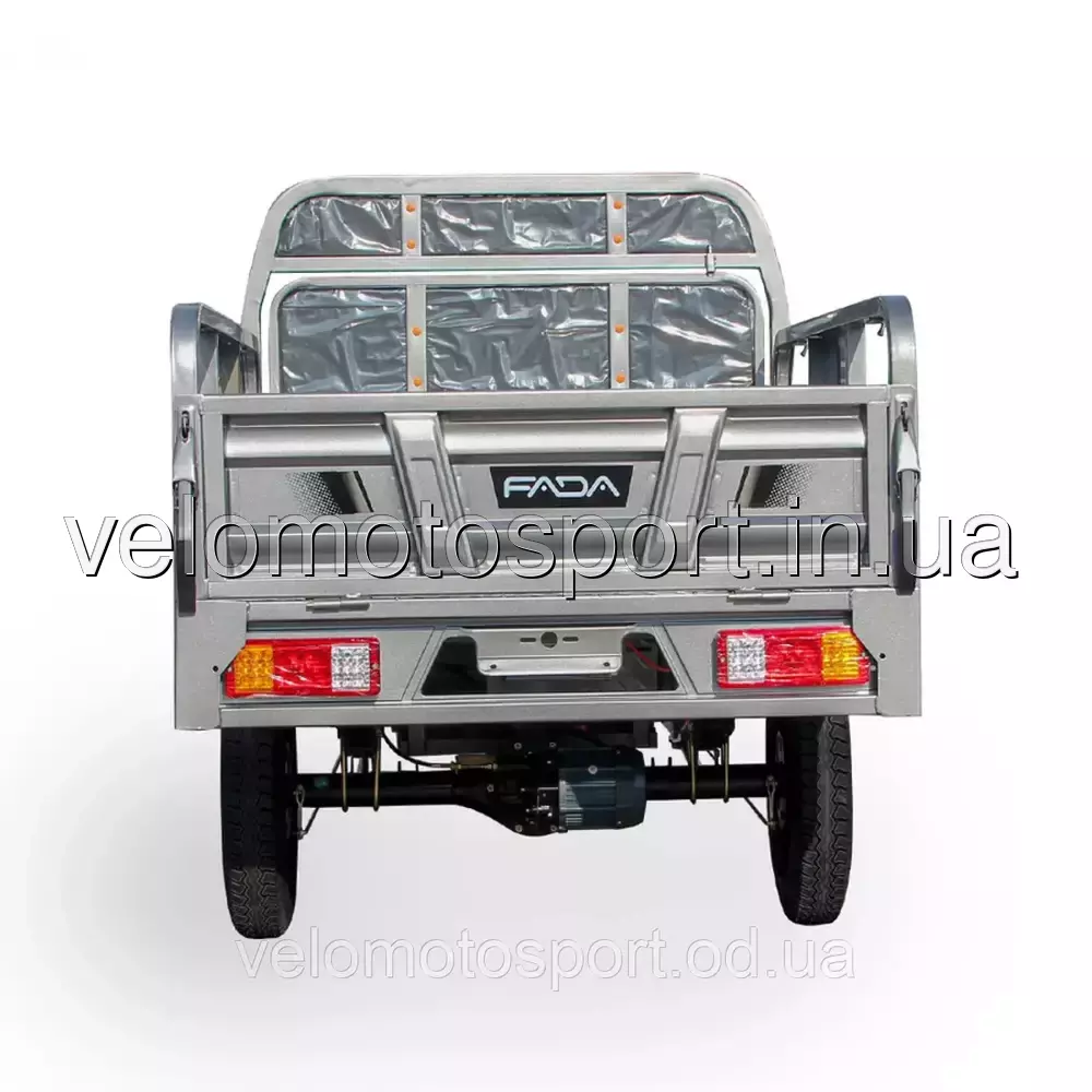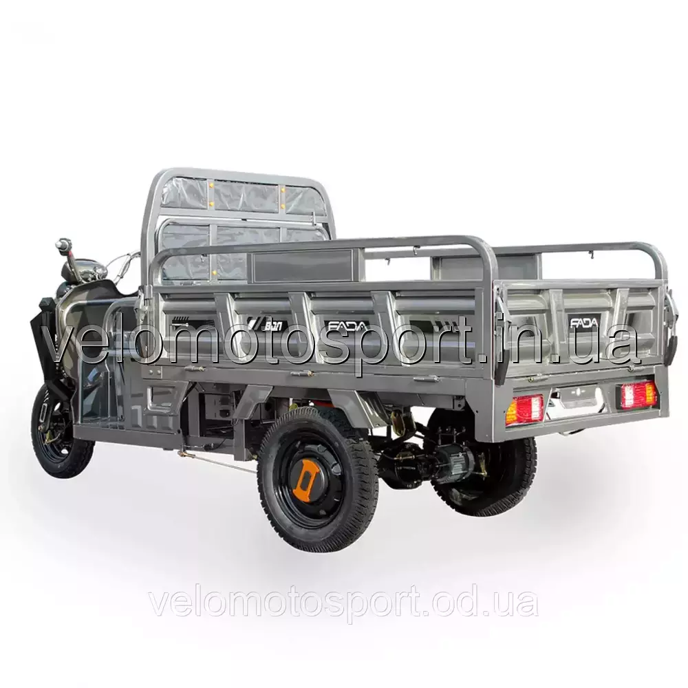 Електротрицикл вантажний FADA МУЛ 1000W - Fada МУЛ це середній представник вантажних електротрициклів у модельній лінійці. Відмінність моделі від базової версії FADA Поні полягає у збільшених габаритах вантажної платформи 1500 мм довжина х 1000 мм ширина х 450 мм висота борту (площа кузова 1,5 м2), загальної вантажопідйомності, що дорівнює 680 кг. потужному 1000 ватному електродвигуну та батареях збільшеної ємності 45А/H.Категорія вантажних електричних трициклів на сьогоднішній день стає масштабовано популярною в різних галузевих сферах: фермерських господарствах, інфраструктруних об'єктах великих заводів, сільськогосподарських об'єднань, організацій ЖКГ та інших. Полегшують транспортування вантажу в складах та ангарах, багажу на території аеропортів, вокзалів, готельних комплексів. Пасажирські трицикли з сидіннями знадобляться у туристичній сфері: на курортах, у паркових та заповідних зонах. Це обумовлено і технологічним розвитком даної техніки (вона стала не тільки надійнішою та якіснішою, а й доступнішою, ніж раніше) та очевидними перевагами перед побратимами з ДВС.