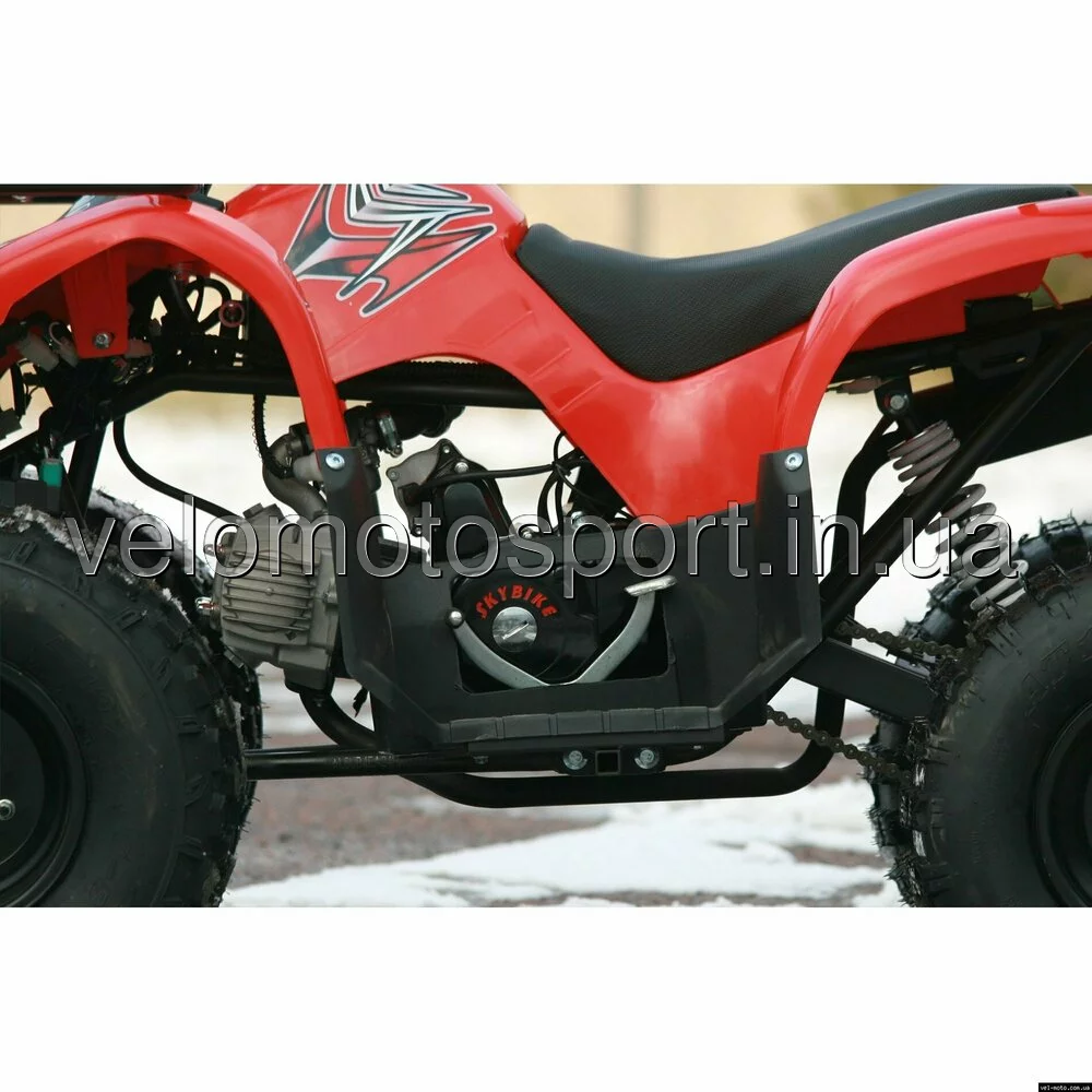Квадроцикл Skybike HYPER-110 - отлично подойдёт как любителям активного отдыха, так и для тренировок подрастающих спортсменов. Отличается простотой и надёжностью. Одноцилиндровый четырехтактный двигатель с объемом 107 куб.см. расходует около 2 литров горючего на 100 километров пути. Электростартер, регулируемая передняя и задняя подвеска. В отличие от большинства собратьев по классу, этот квадрик имеет не только задний дисковый тормоз, но и передние дисковые тормоза. ТЕХНИЧЕСКИЕ ХАРАКТЕРИСТИКИ: