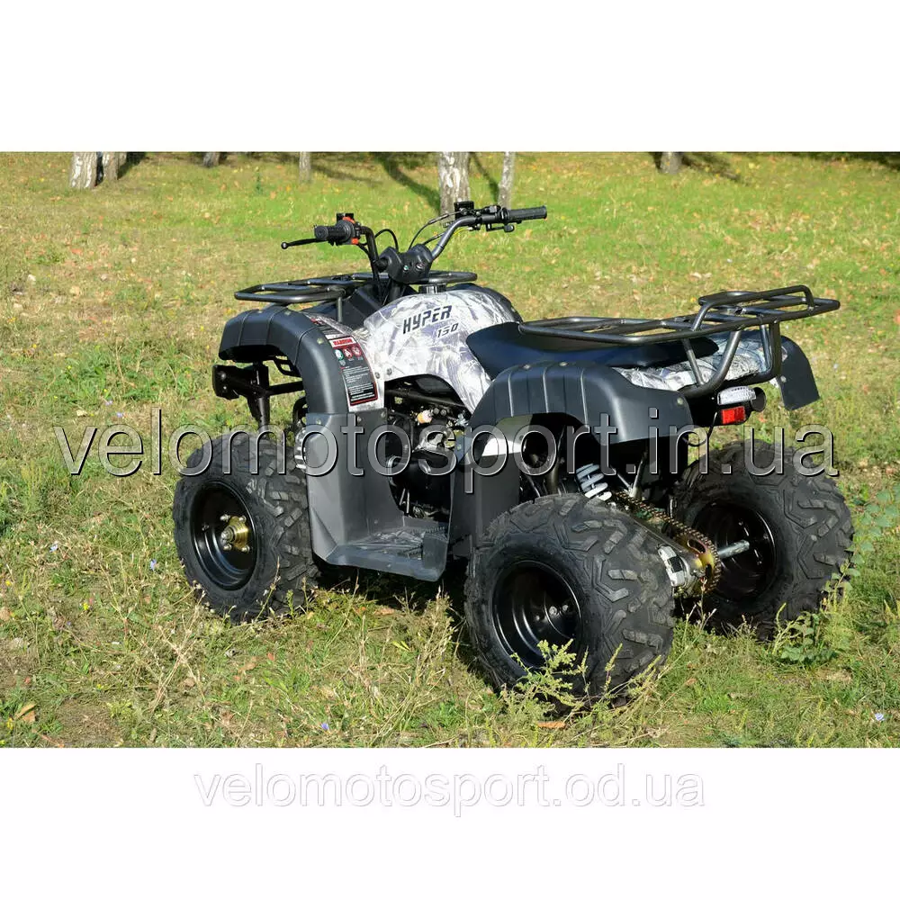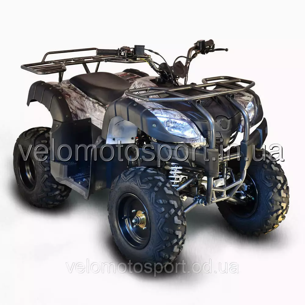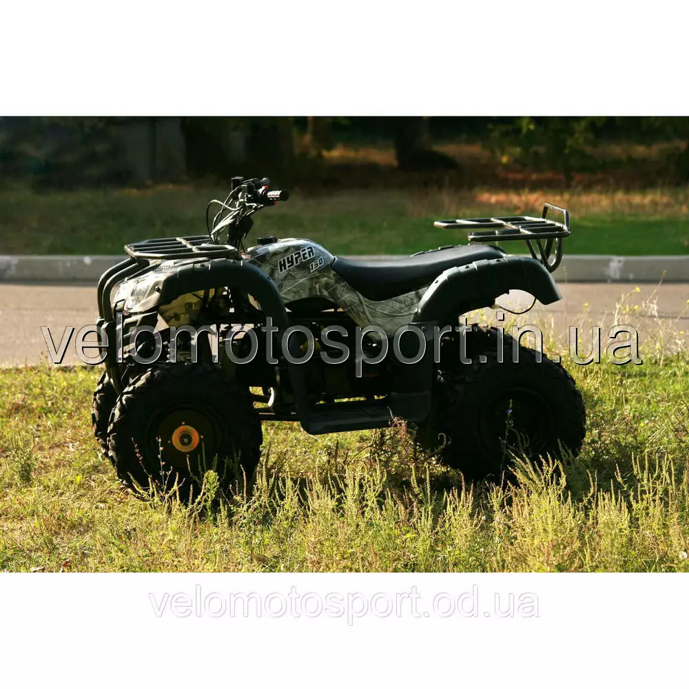 Квадроцикл Skybike HYPER-150 CAMO - отличается простотой и надёжностью. Одноцилиндровый четырехтактный двигатель с объемом 149.6 куб.см. расходует около 3.5 литров горючего на 100 километров пути. Передний и задний металлические багажники, наличие как заднего, так и передних дисковых тормозов, защитный кенгурятник, окраска "хамелеон".ХАРАКТЕРИСТИКИ:Объем двигателя (куб.см.)