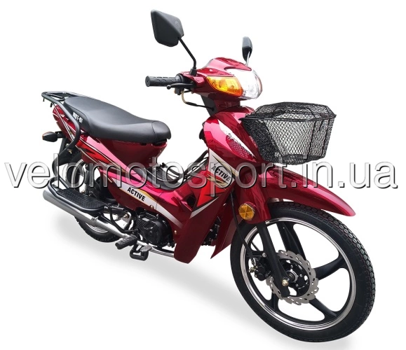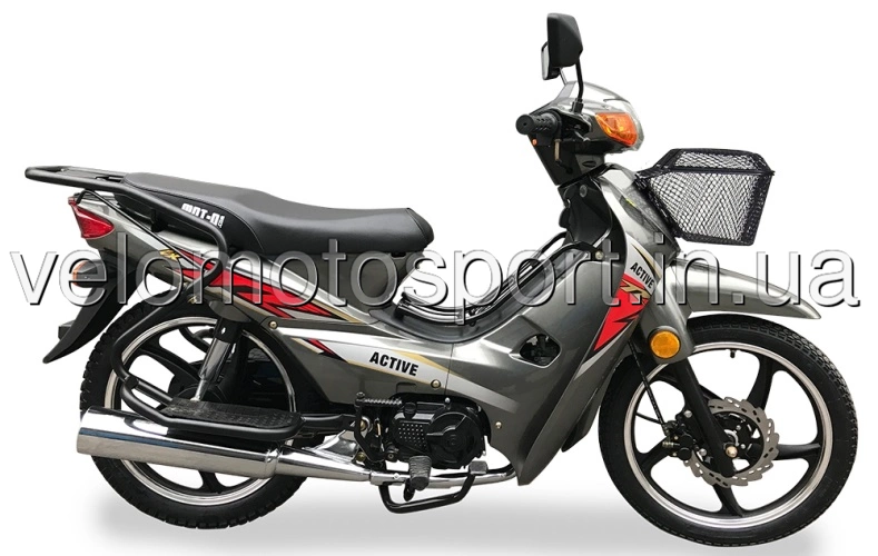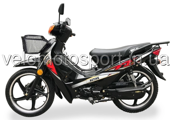 Мопед Актив 110 от Мустанг сочетает в себе формы скутера и мопеда, такой вид мототехники называется скутеретта.