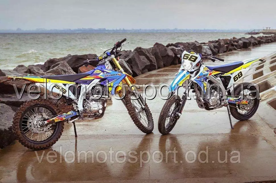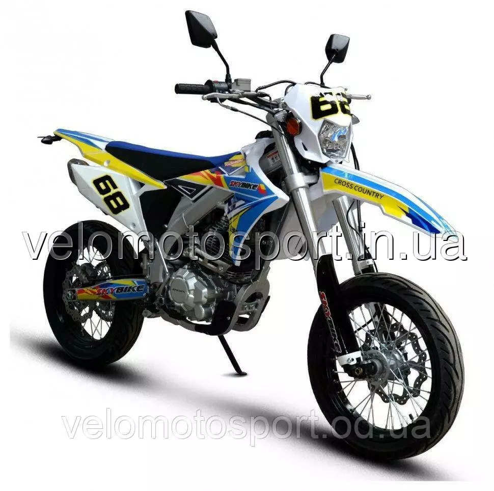 Номера телефонов для заказов:093-100-95-92;068-551-71-04;095-758-06-52; Мотоцикл SKYBIKE Скайбайк MZK 250 (MOTARD)- Этот мотоцикл - новая разработка 2019 года. Ее обкатали и запустили в серийное производство в 2020 году. Мотоцикл агрегатирован 4-тактным двигателем воздушного охлаждения ZS172FMM-3A (CB250-F), производства компании ZONGSHEN, обьемом 249 куб.см., мощностью 20,5 л.с., верхневальный, без балансировочного вала. Ход поршня 61,4 мм, диаметр поршня 72 мм., зажигание электронное. Запуск двигателя на мотоцикле возможен как с помощью электростартера, так и при помощи лапки кик-стартера. На мотоцикле использованы спицованные колесные диски с алюминиевыми ободоми, размером 17 дюймов, на которых установлена дорожная резина размером 110/70-17 спереди и 130/70-17 сзади. При колесной базе 1490 мм минимальный радиус разворота составляет 2300 мм. Достаточно динамичный мотор при соотношении ведущей и задней звезд 13-49 позволяет разгонять мотоцикл до максимальной скорости 95 км/час. Объем топливного бака 6,3 л., расход топлива 2,7 л/100км позволяет на одной заправке проехать расстояние более 200 км. ТЕХНИЧЕСКИЕ ХАРАКТЕРИСТИКИ:Варианты цветов