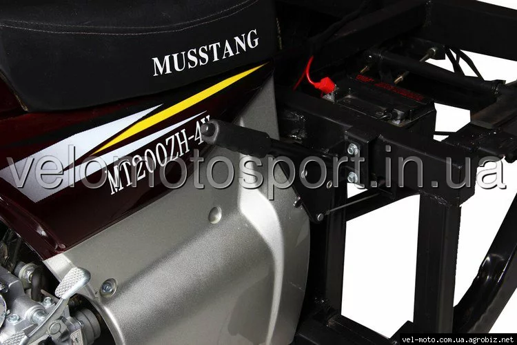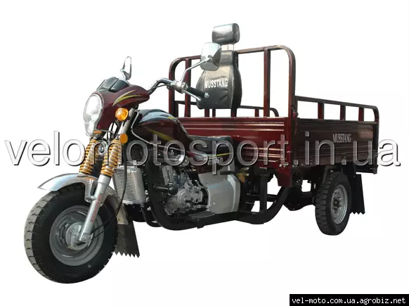 Конструкция рамы на всех трициклах представляет собой единый каркас, сваренный из трубы прямоугольного сечения с толщиной стенки 2,5 мм. Каждый трицикл модели МТ150-4V, МТ200-4V или МТ250-4V укомплектован полноразмерным запасным колесом и гидравлическим 2-х тонным домкратом. Задние тормоза оснащены гидроприводом в целях повышения эффективности торможения . Передняя вилка оснащена бочкообразными пружинами с так называемой прогрессивной навивкой. Основная польза от этого состоит в том, что в зависимости от нагрузки на переднюю ось, которая меняется по мере загрузки кузова трицикла, пружины одинаково хорошо воспринимают ударные нагрузки от неровностей по которым проходит переднее колесо. При езде без груза максимально задействована лишь средняя часть пружины с максимальным диаметром и межвитковым расстоянием , а по мере загрузки в работу «включаются» верхняя и нижняя части пружины. Эффект – одинаковый комфорт водителя, удобство управления при езде и с грузом и без, а также минимизация ощущения « выпрыгивающего из рук руля». В случае же с обычными пружинами, последние более жестко воспринимают удары при езде на трицикле без груза и становятся несколько мягче лишь при существенной загрузке кузова. Кузов имеет три откидных борта, причем боковые закреплены на трех петлях приваренных к основанию, а не на двух. На верхней части борта есть четыре перемычки. Каждая из них это продолжение ребра жесткости борта, которое начинается от основания кузова, направлено вертикально и призвано держать нагрузку во избежание деформации плоскости борта в случае крена и смещения нагрузки в сторону одного из них. Модели грузовых трициклов MUSSTANG МТ200-4V и МТ250-4V оснащаются колесными дисками с пятью крепежными отверстиями для равномерности распределения затяжки, большей несущей способности и шинами размерностью 5.00-12.На все колеса установлены брызговики. Задняя подвеска состоит из шести рессор, вертикально установленных амортизаторов для максимально эффективного гашения колебаний, дополнительных пружин, а также качественно выполненной стремянки крепления рессор и надежных сварных швов в точке соединения с рамой кронштейна для крепежа рессоры. Передняя часть двигателя в моделях MUSSTANG МТ200-4V и МТ250-4V закреплена на силовой поперечине, которая крепится к раме через виброгасящие пружинные опоры с резиновыми втулками. Как результат меньше вибрации и меньше эффект самораскручивающихся болтов.