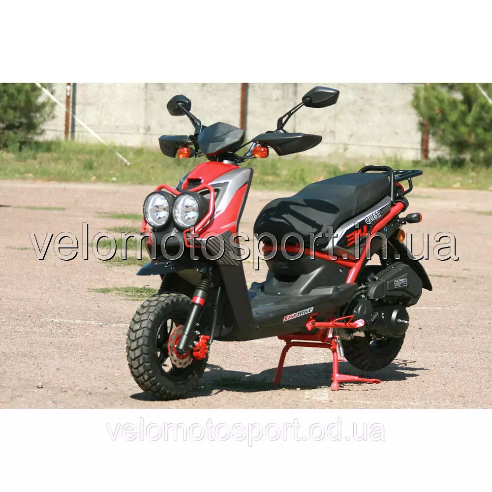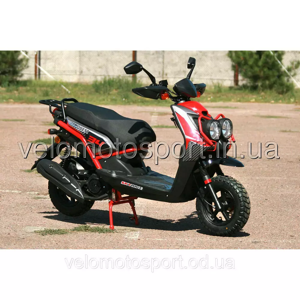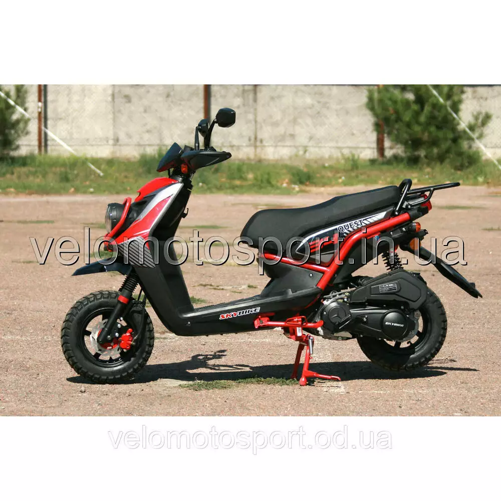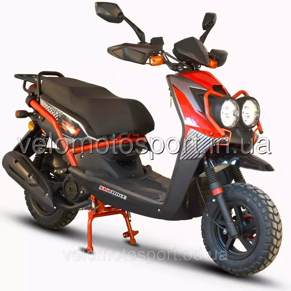 Скутер SKY BIKE QUEST 150 - этоагрессивный, современный дизайн, хорошая устойчивость как на дороге, так и на бездорожье привлечет внимание активной молодёжи для каждодневных поездок по городу и для загородных поездок. Сельское бездорожье будет укатано агрессивным профилем резины, который не оставит камня на камне грунтовых дорог неся Вас к достижению поставленных нелегких задач. Базовая комплектация включает газовые регулируемые амортизаторы, защитная дуга для передних фар, ветровое стекло и задний багажник.