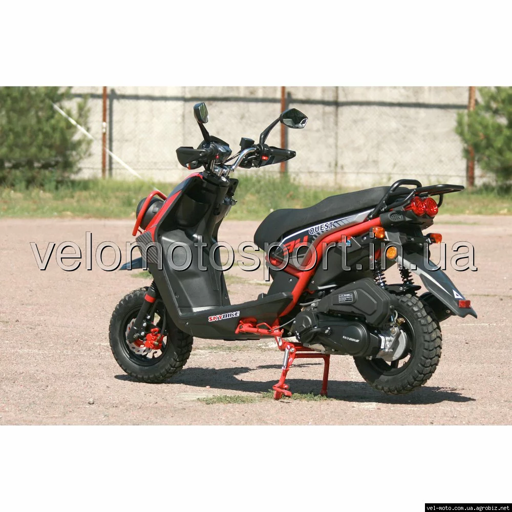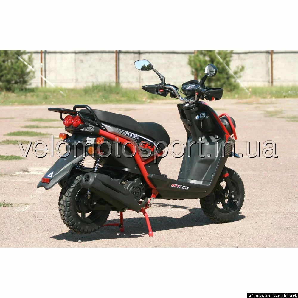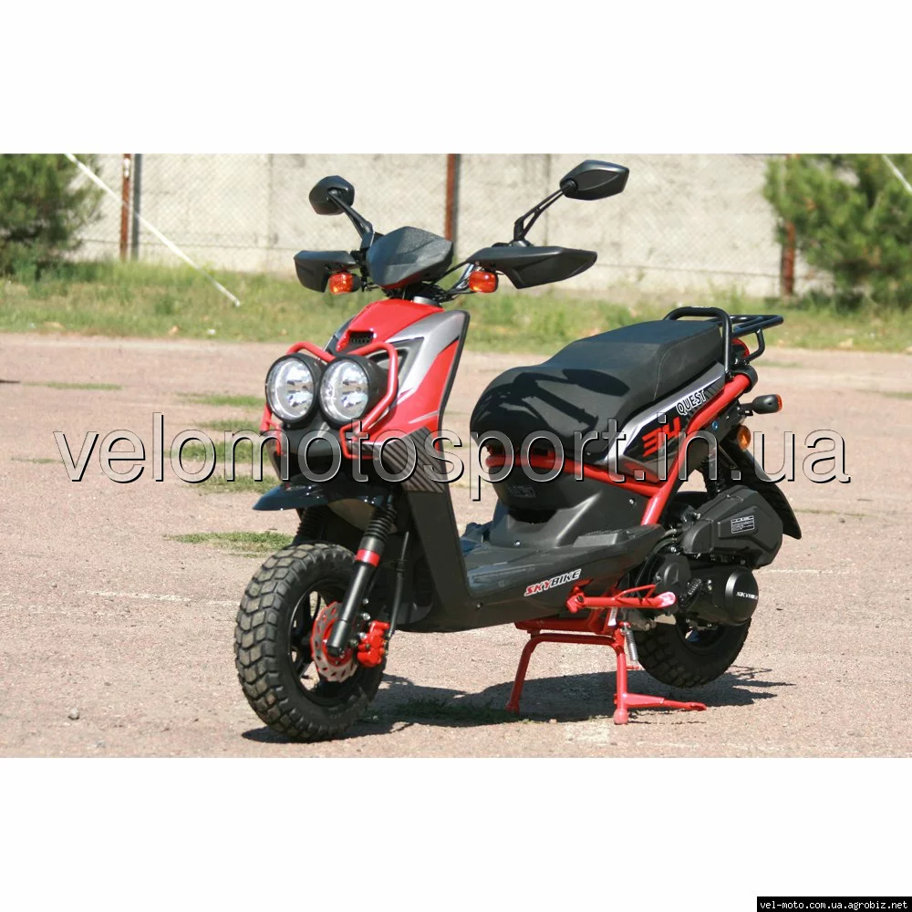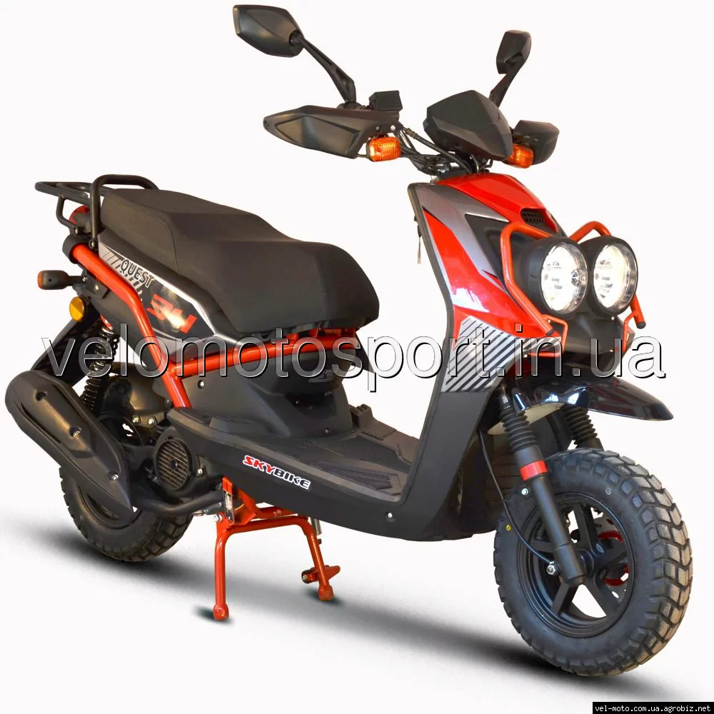Скутер SKY BIKE QUEST 150- это отличный, молодёжный, агрессивный дизайн скутера переплетается с прекрасной комплектацией. В базовом комплекте скутера вы увидите защитные дуги для передних фар, отличные регулируемые газовые амортизаторы, стекло ветровой защиты, вместительный багажник и ещо множество приятно радующих фишек.ТЕХНИЧЕСКИЕ ХАРАКТЕРИСТИКИ: